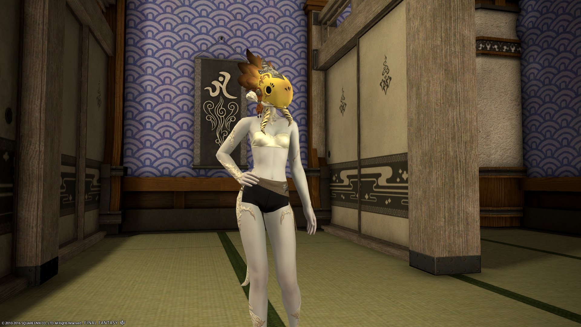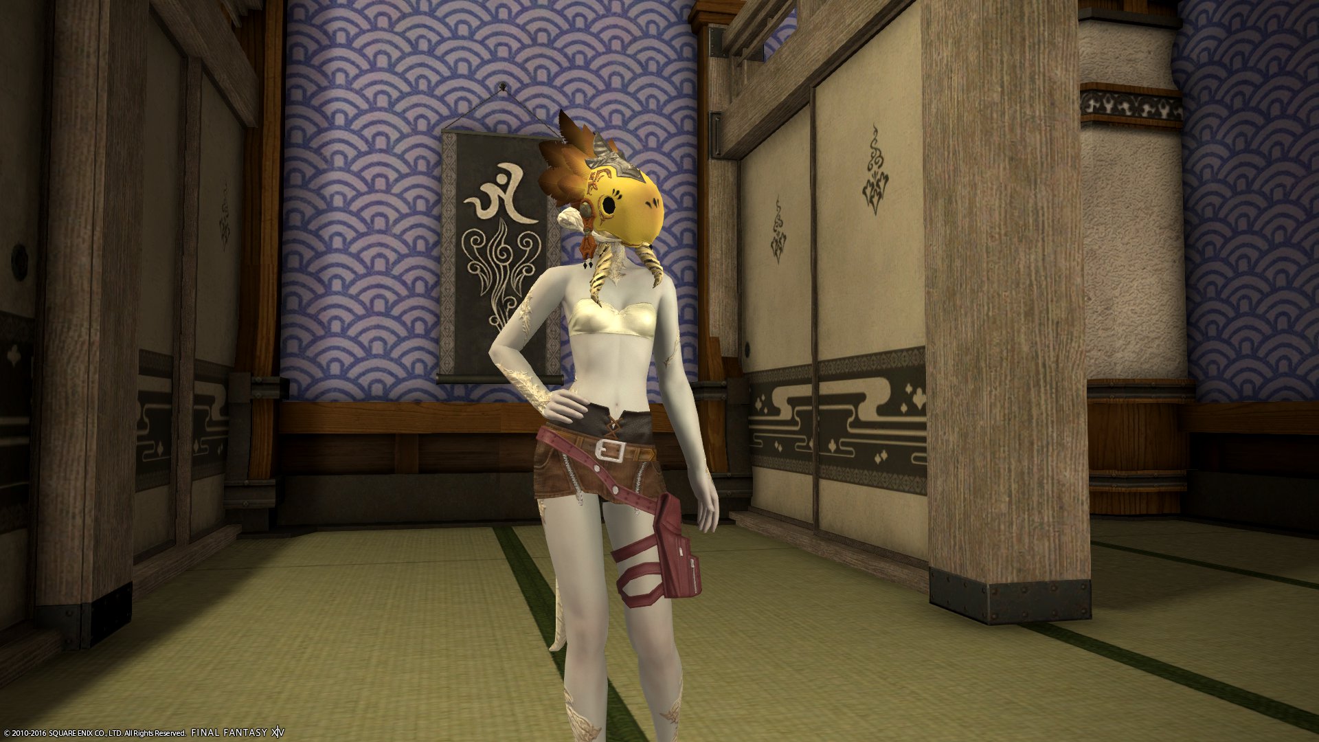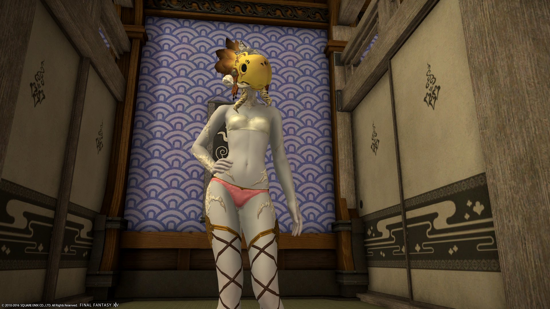 パンツ系の中ではウェスト部分の生地が多く、露出してると見せかけてそんなに露出していないあらゆる意味でエタバン向けな装備。染色可。