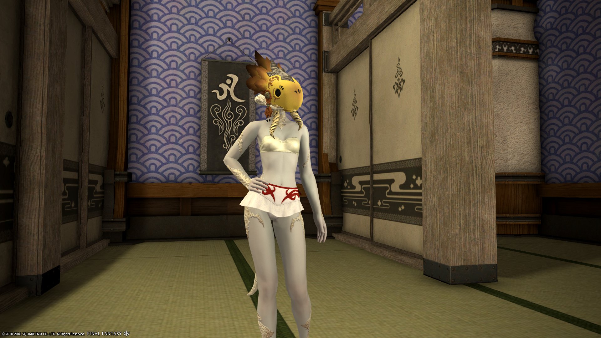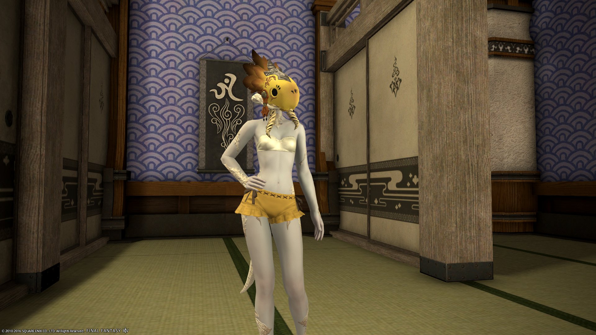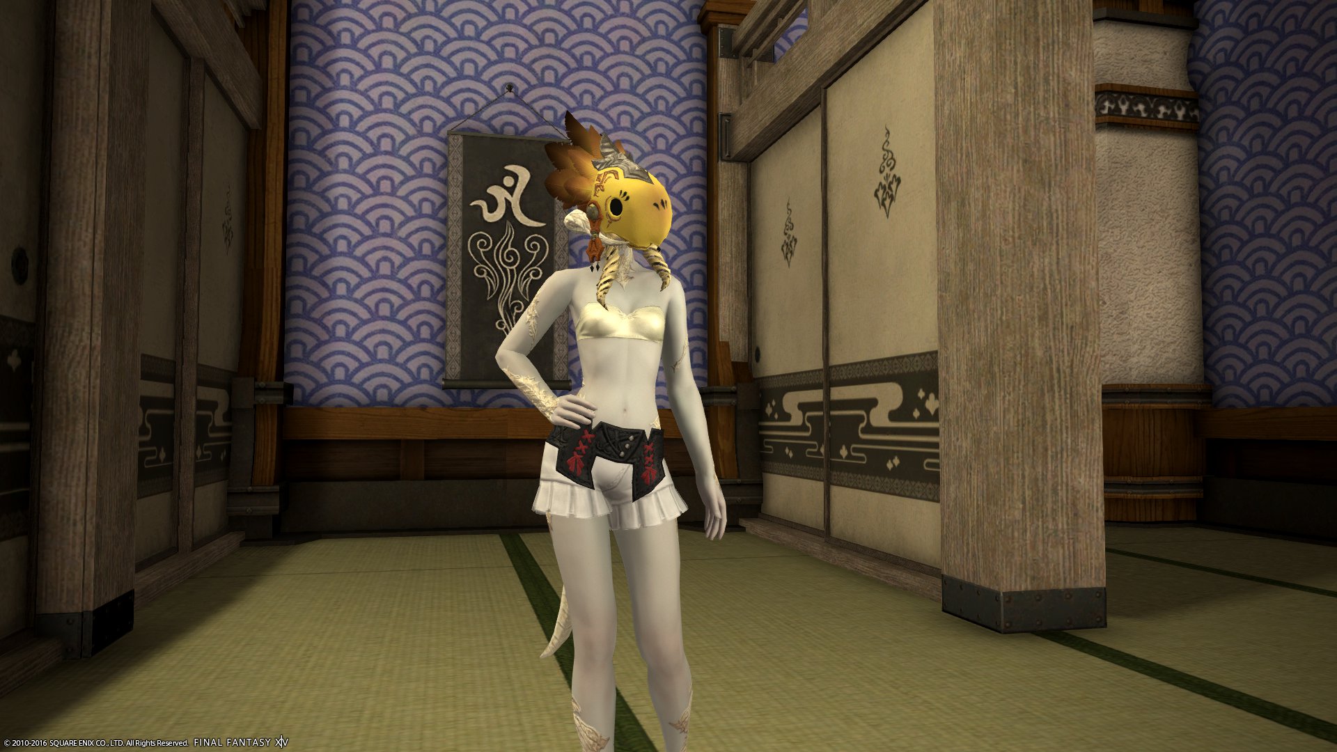 パンツ系の中ではウェスト部分の生地が多く、露出してると見せかけてそんなに露出していないあらゆる意味でエタバン向けな装備。染色可。