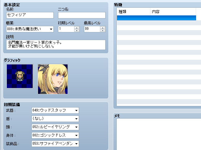 パーティは魔法役と物理役の二人なので、それ以外のデータはそのまま放置。