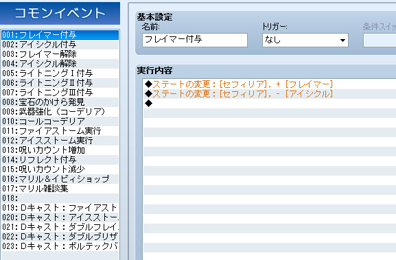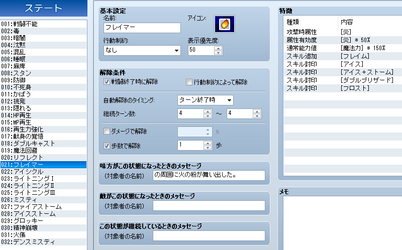 フレイマーより下が基本的に魔法役の主人公専用ステートでスキルを追加したり封印したりする。