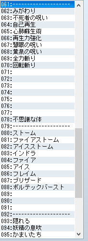 空き番があるのは表示上の順番(ソート)を覚える順にそろえたくて、バランスでスキルが前後したり威力調整したり2つのスキルに分割したりしたときにバラバラにならないよう余裕を持って作っている。