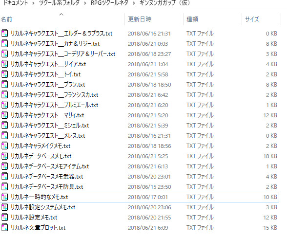 ↓はとりあえず作ったテキストファイル。詳細表示にしとけばサイズでおおむねの進捗を図れる。