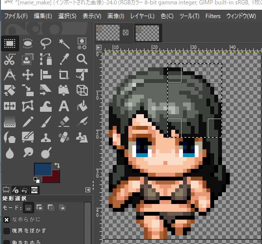 ので、短形範囲選択で、おかっぱ部分(右側)を選択。