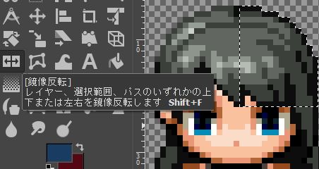 そのコピーした部分を選択した状態で、ツールにある「鏡像反転」を使って反転させる。