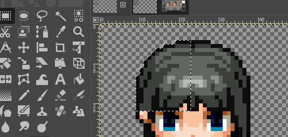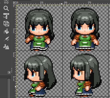 右向きも髪の毛がおかっぱになっていないので、左向きを鏡像反転させて右向きにし、