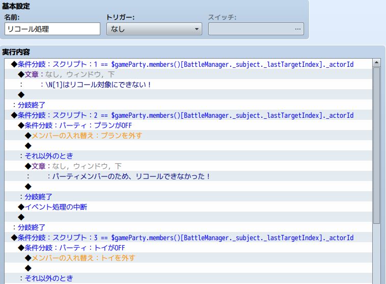 実際実装するとこんなかんじ。このコモンイベントをアイテムにつける。
