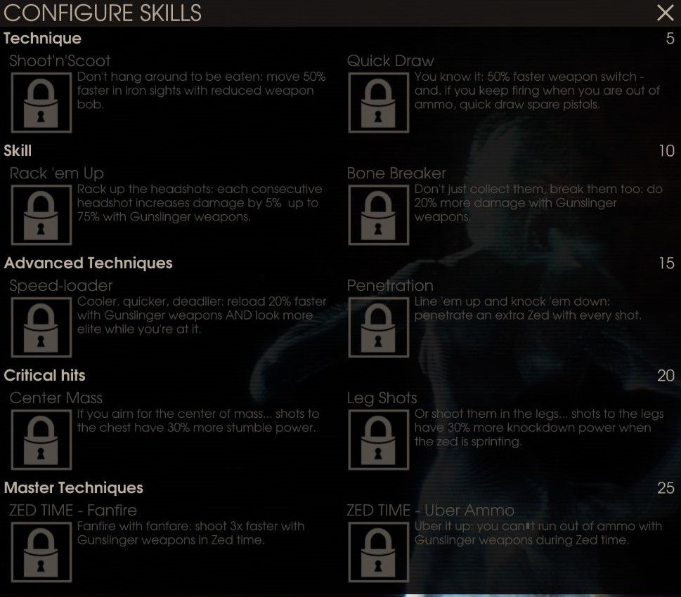 ZED TIME中、ガンスリンガー武器のショットスピードが3倍になる。