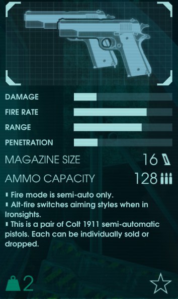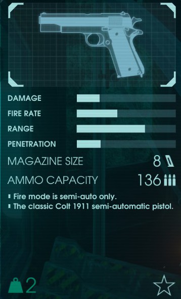オートマチックハンドガン。名前は「M1911 Pistol」。有名なハンドガン。