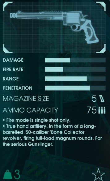 サイレンの頭を1発で飛ばすおかしい銃。貫通力も一番すごい。お値段も一番高い。