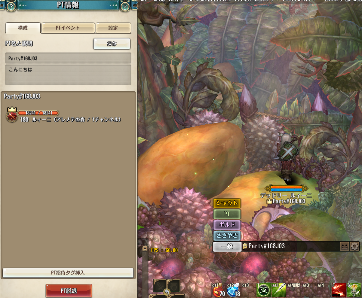 PTはシャウトで募集するのが現在の基本。傭兵所ミッションぐらいだったら一般チャットでいけなくもないけど、やっぱりシャウトがベター。